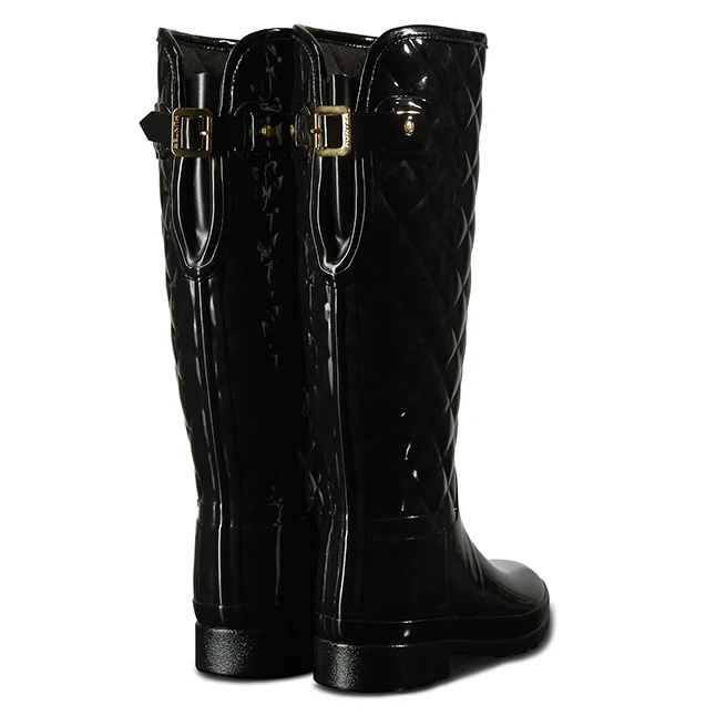 Womens Hunter Black Refined Gloss Quilted Tall Wellington Boots