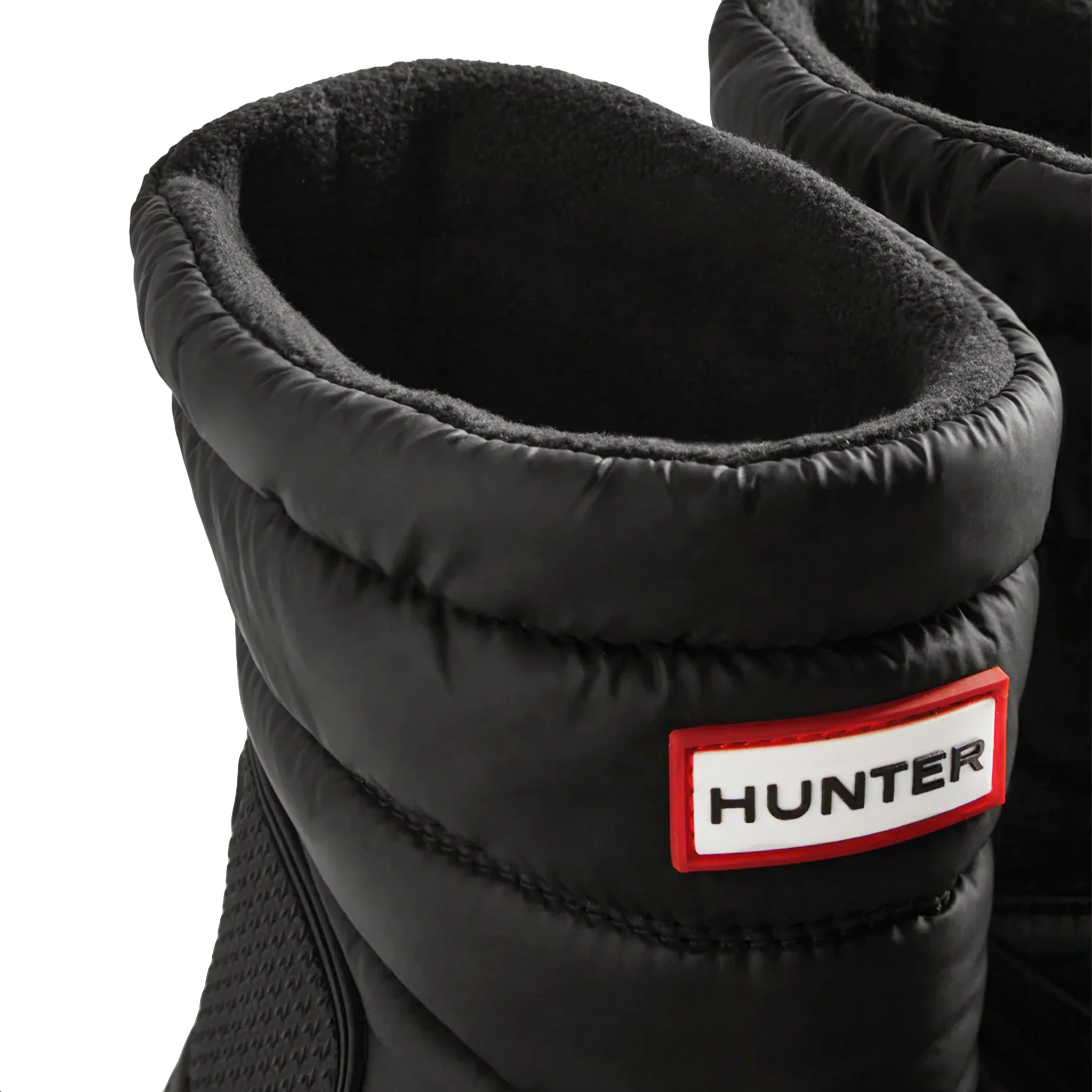Tread through all terrains with the Intrepid Short Snow Boot by Hunter. Expertly handcrafted in a recycled nylon, with a cushioned Ortholite® footbed for premium comfort and support. These women’s snow boots feature a recycled fleece lining, a silicone branded badge to the front, and an elasticated drawstring and toggle along the topline for heat retention. Perfect for any wet and windy walks this winter.